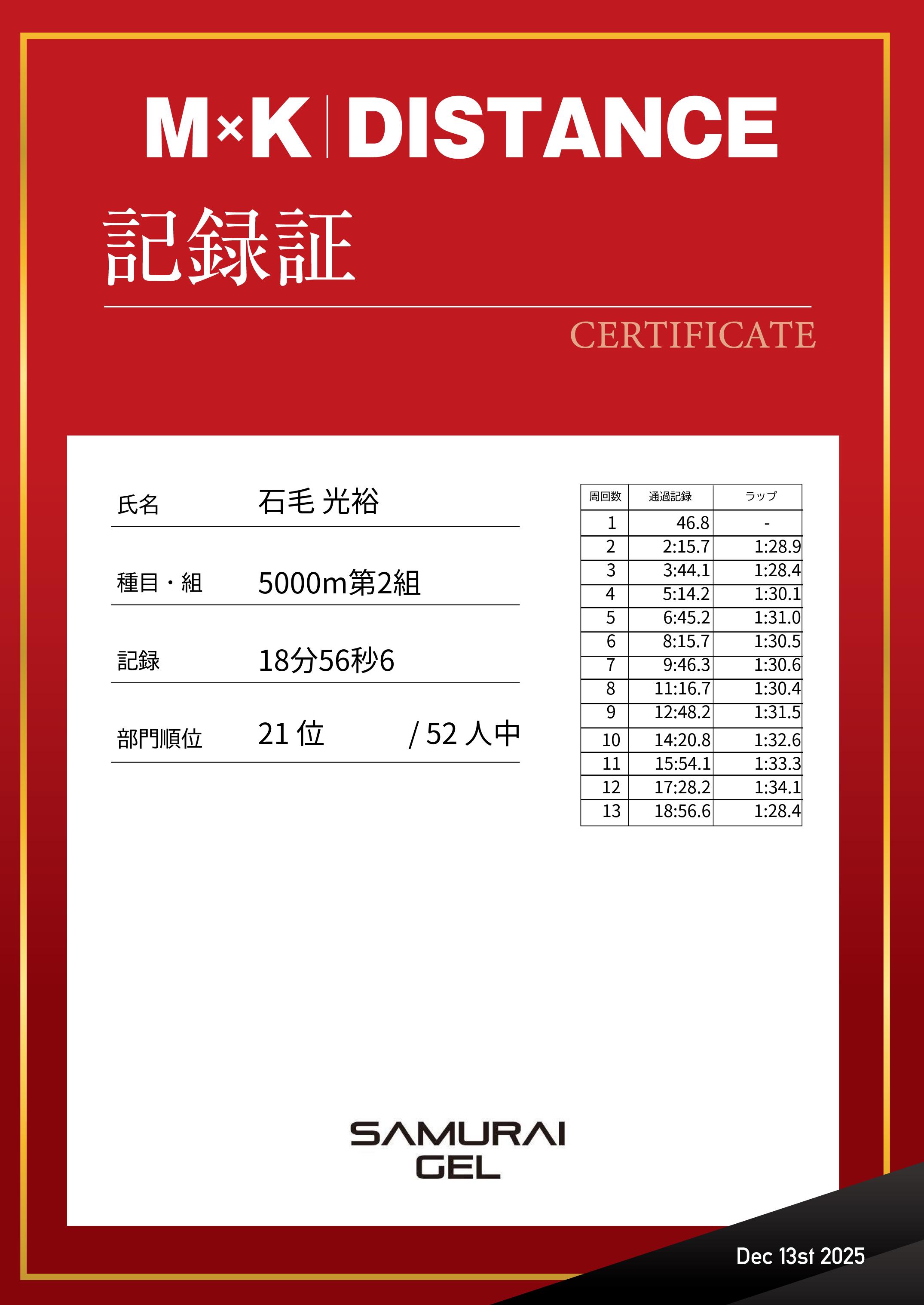 | 距離順位: | 130位/258人中 |