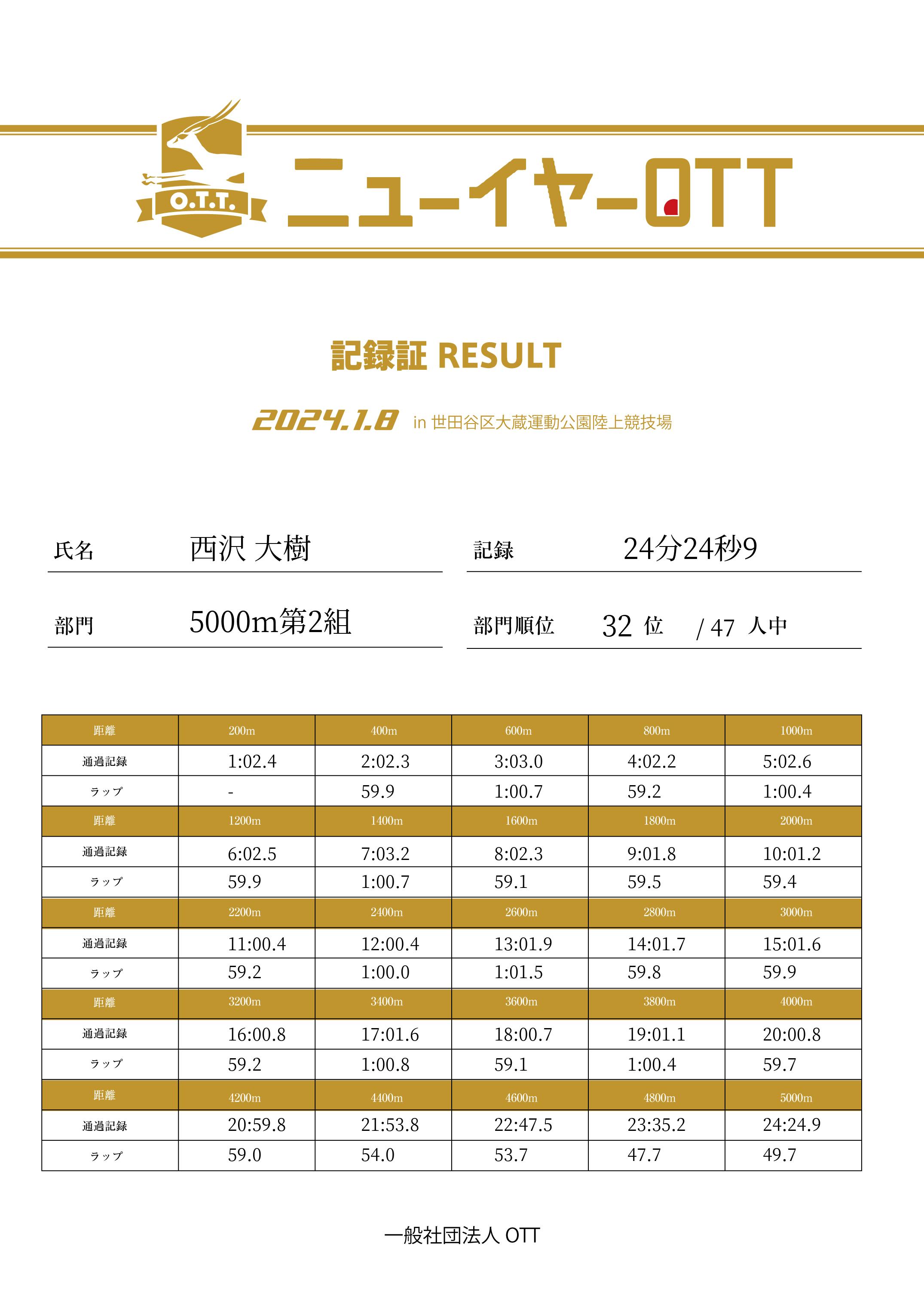 | 5000m | 24:24.9 | 49.7 | 32 |