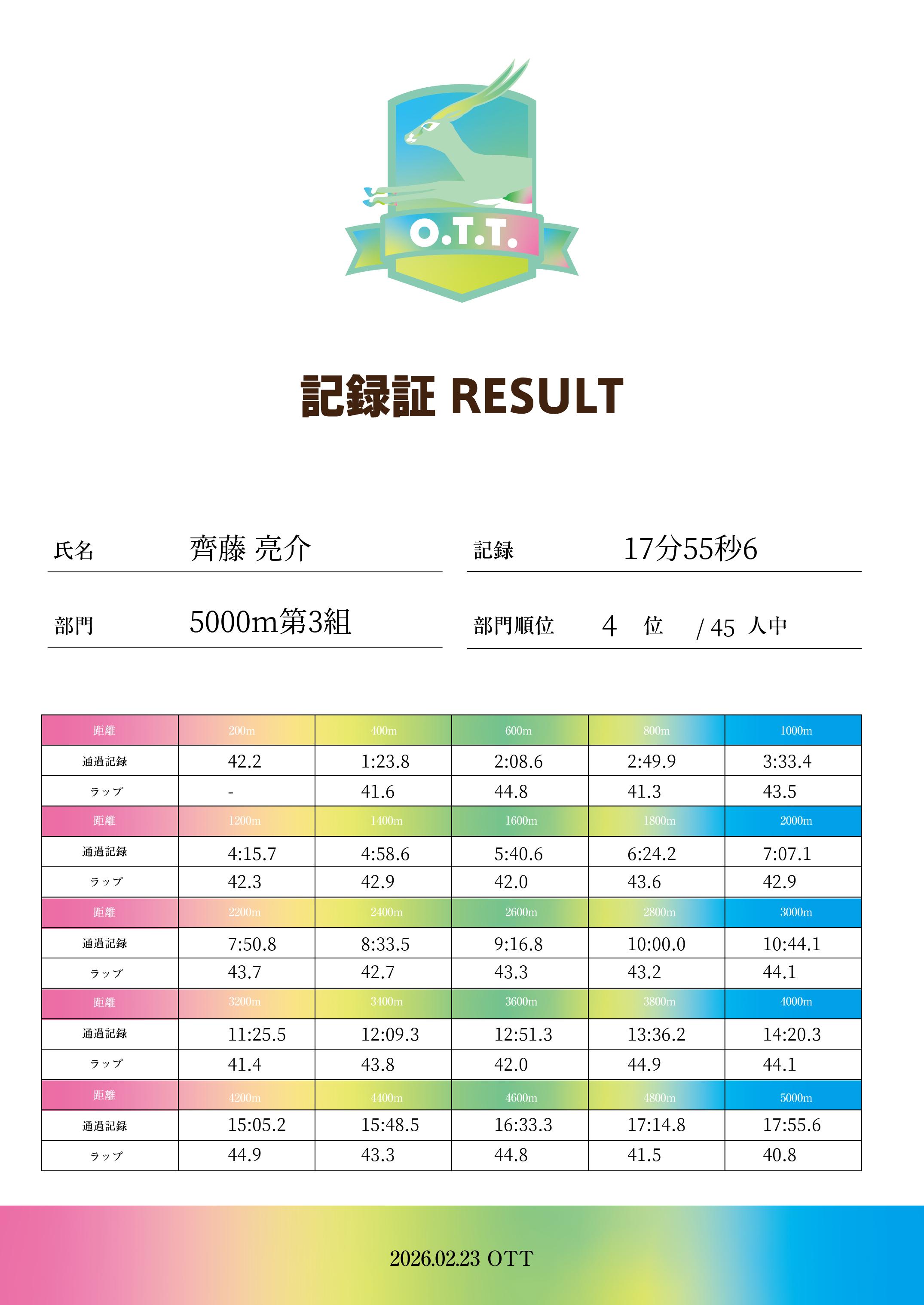 | 距離順位: | 36位/188人中 |