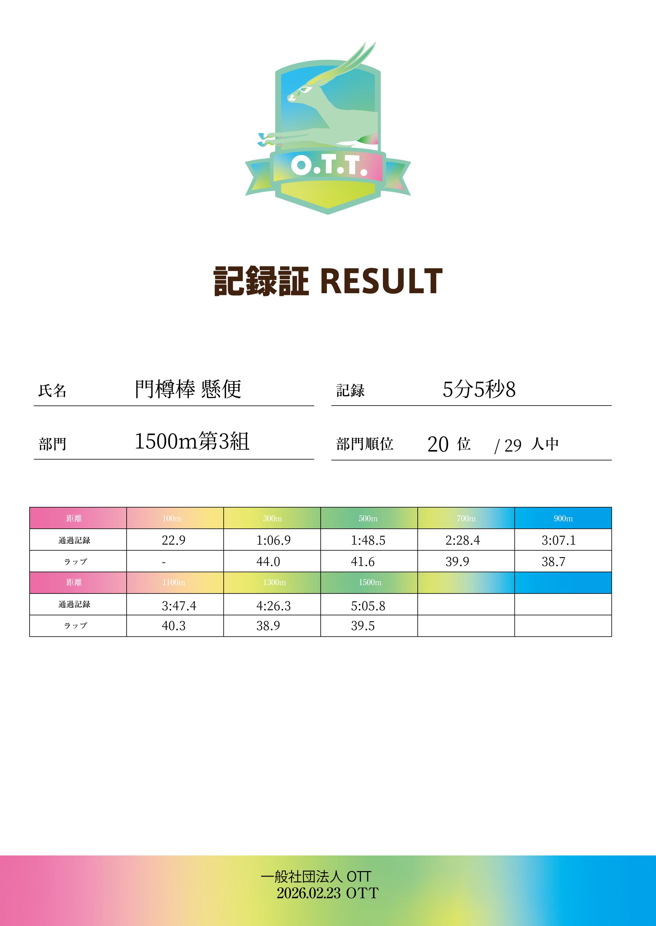 | 距離順位: | 45位/105人中 |