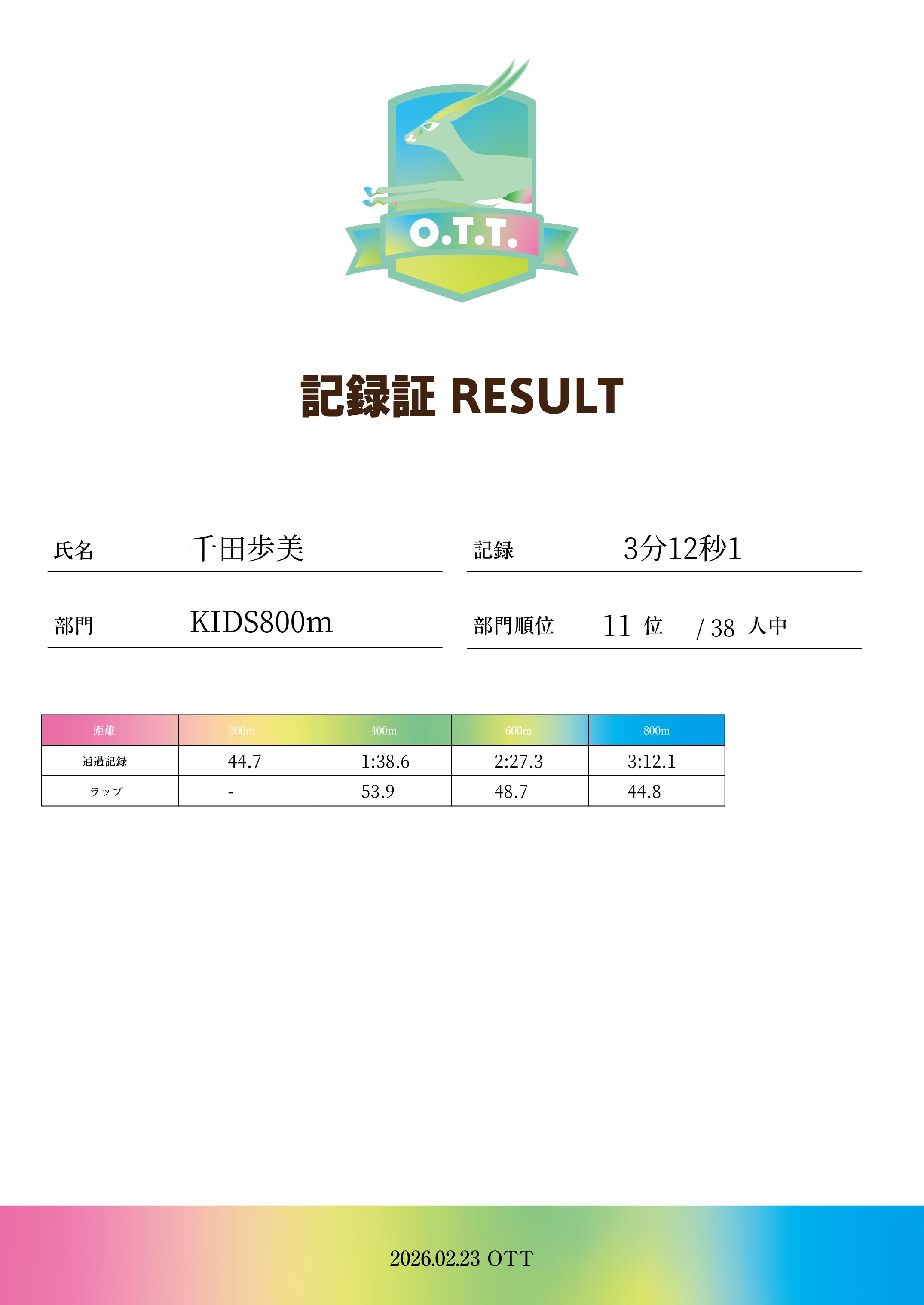 | 距離順位: | 11位/38人中 |