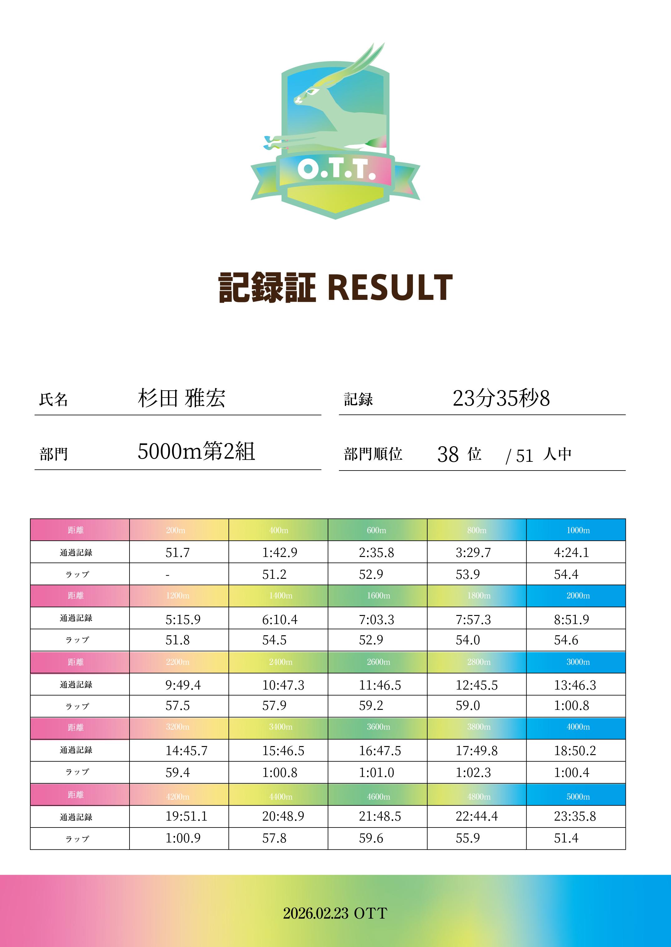 | 記 録: | 23分35秒8 |