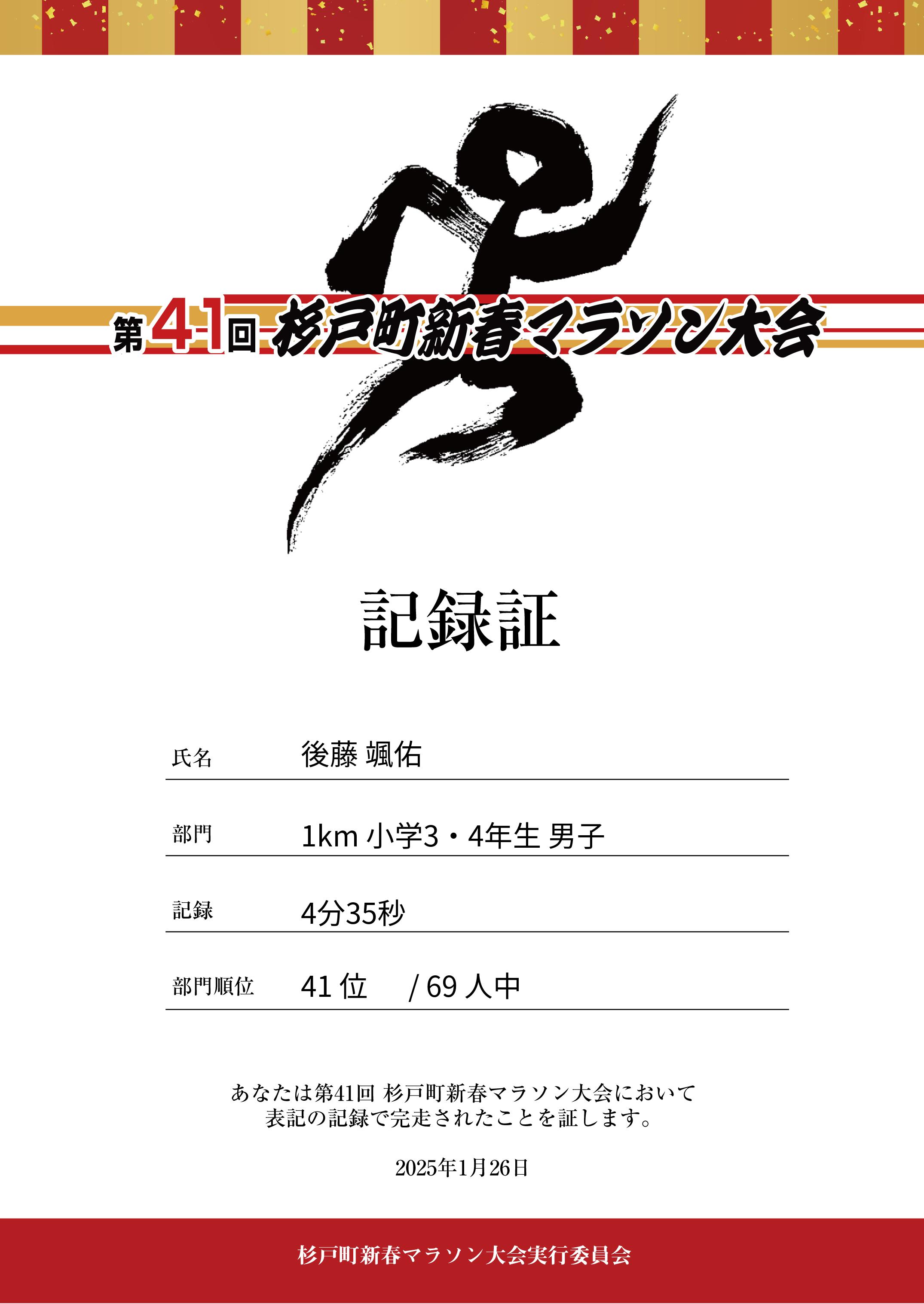 | 距離順位: | 41位/69人中 |