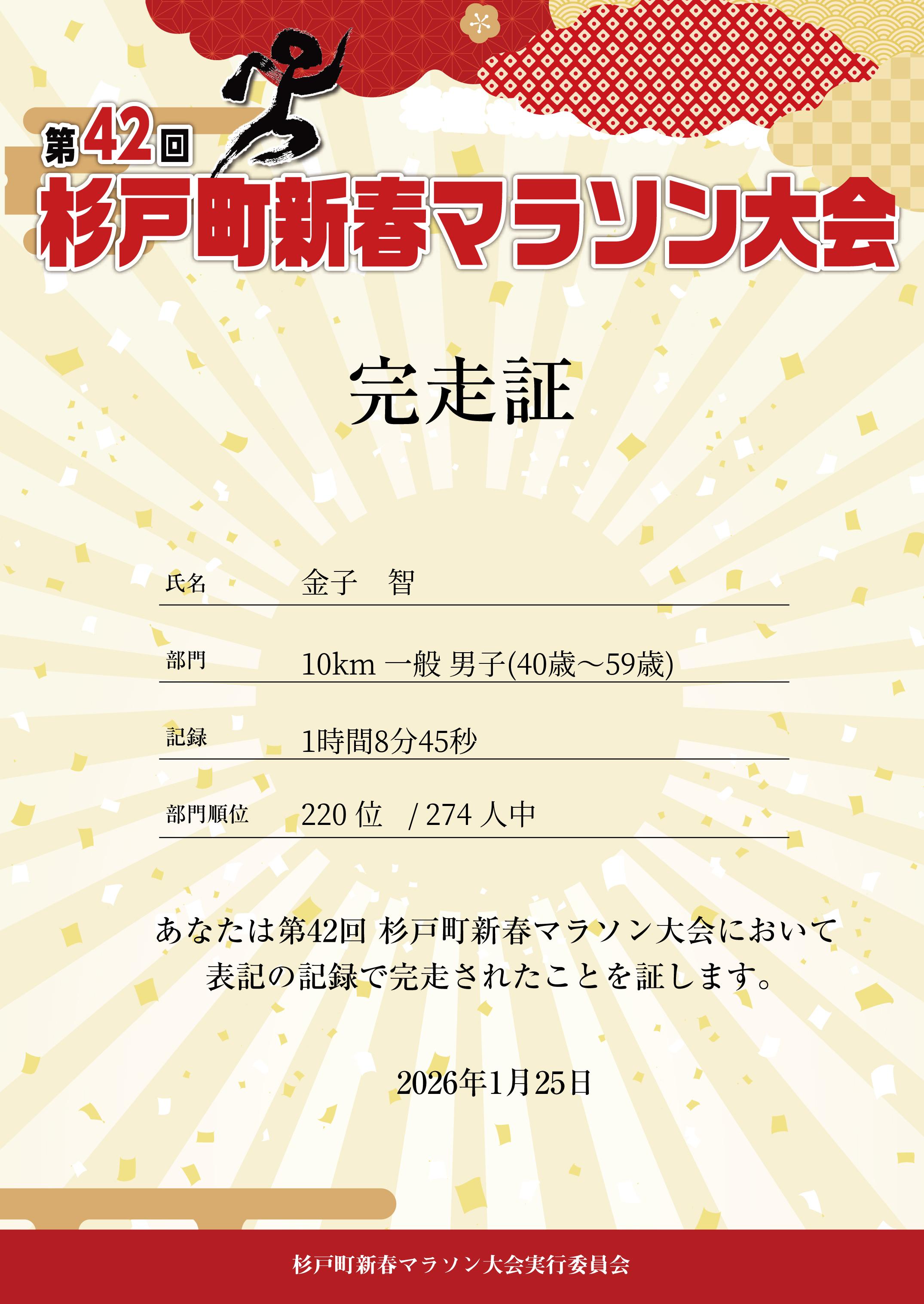 | 距離順位: | 384位/500人中 |
