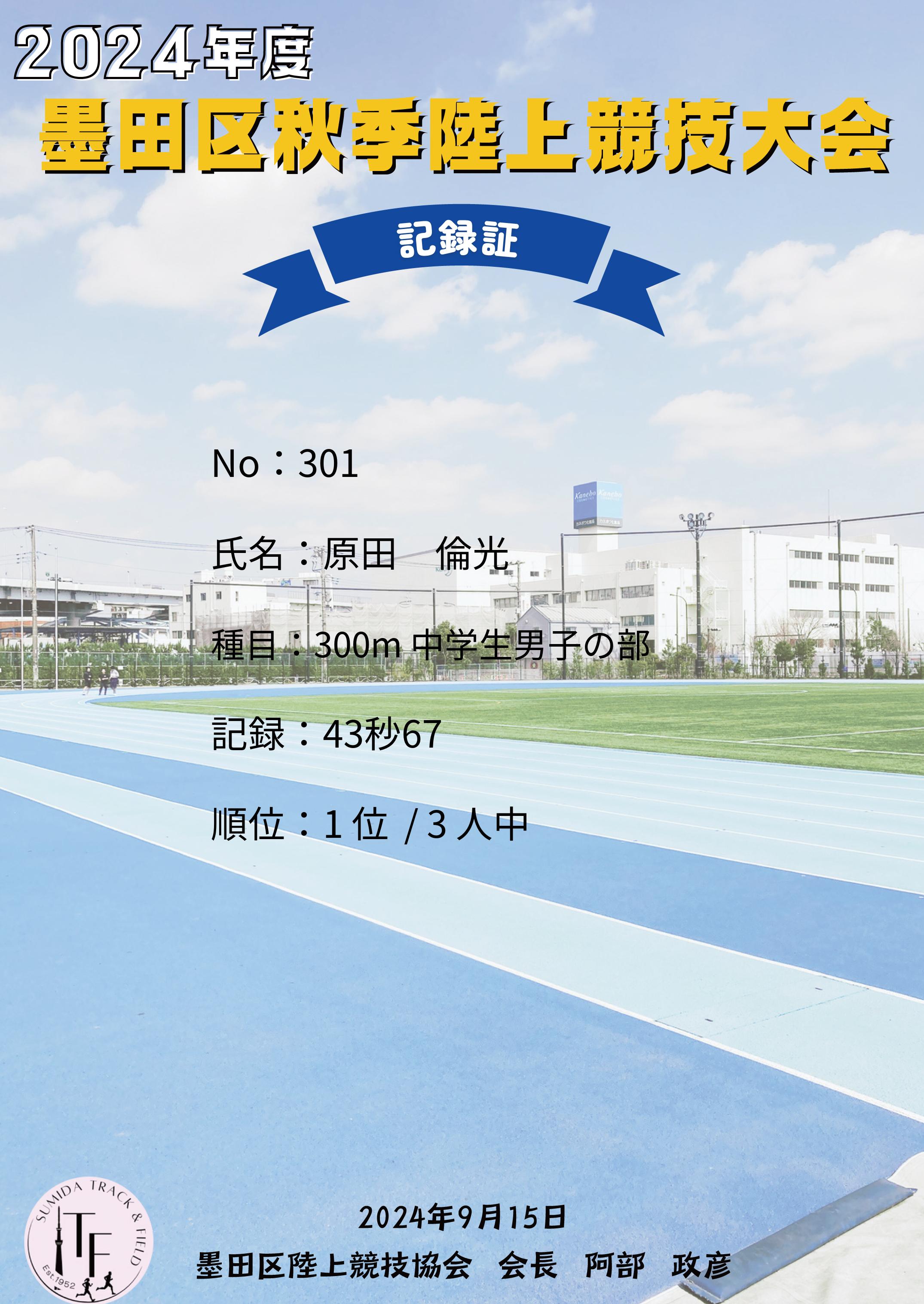 | 記 録: | 43秒67 |