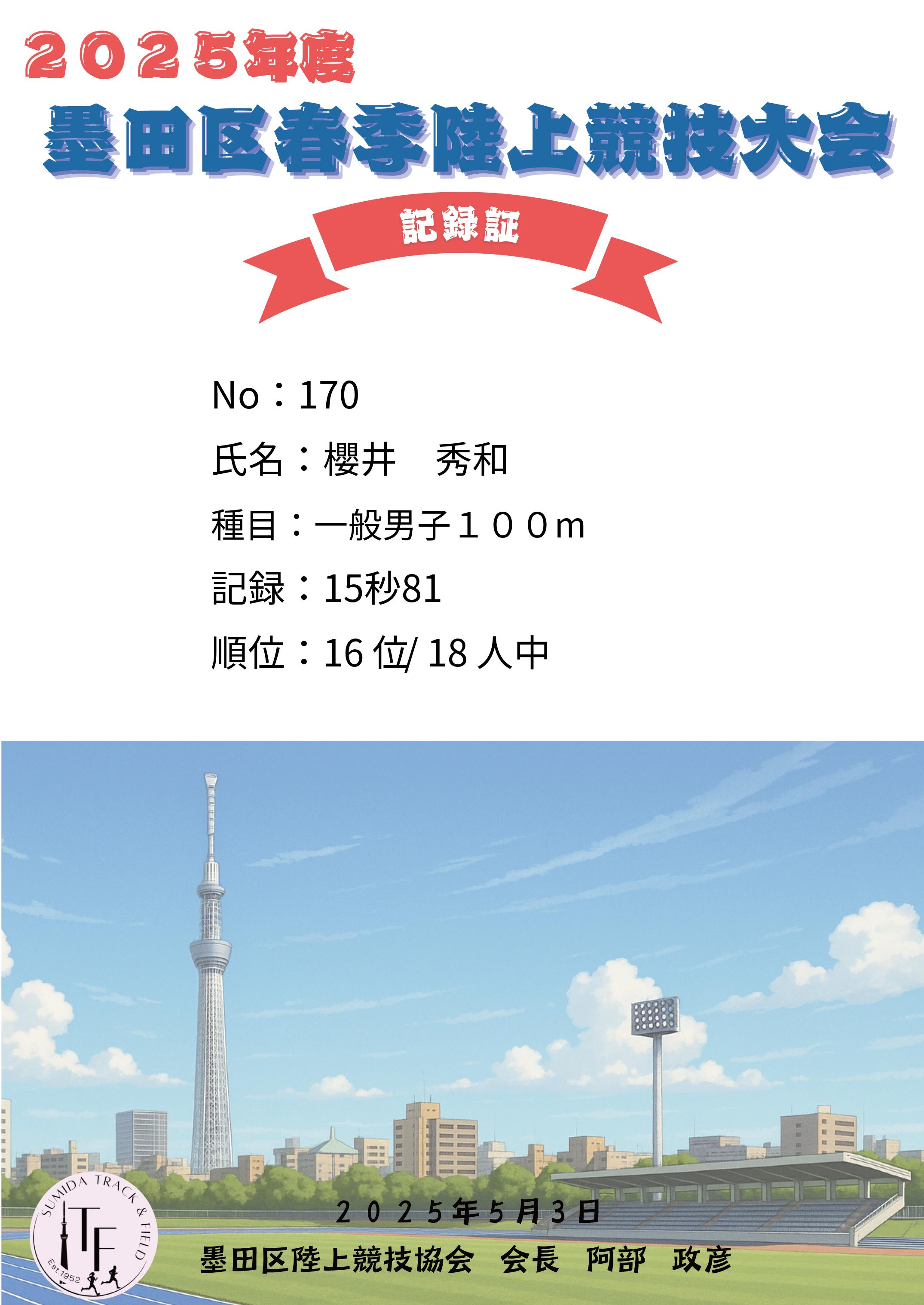 | 記 録: | 15秒81 |