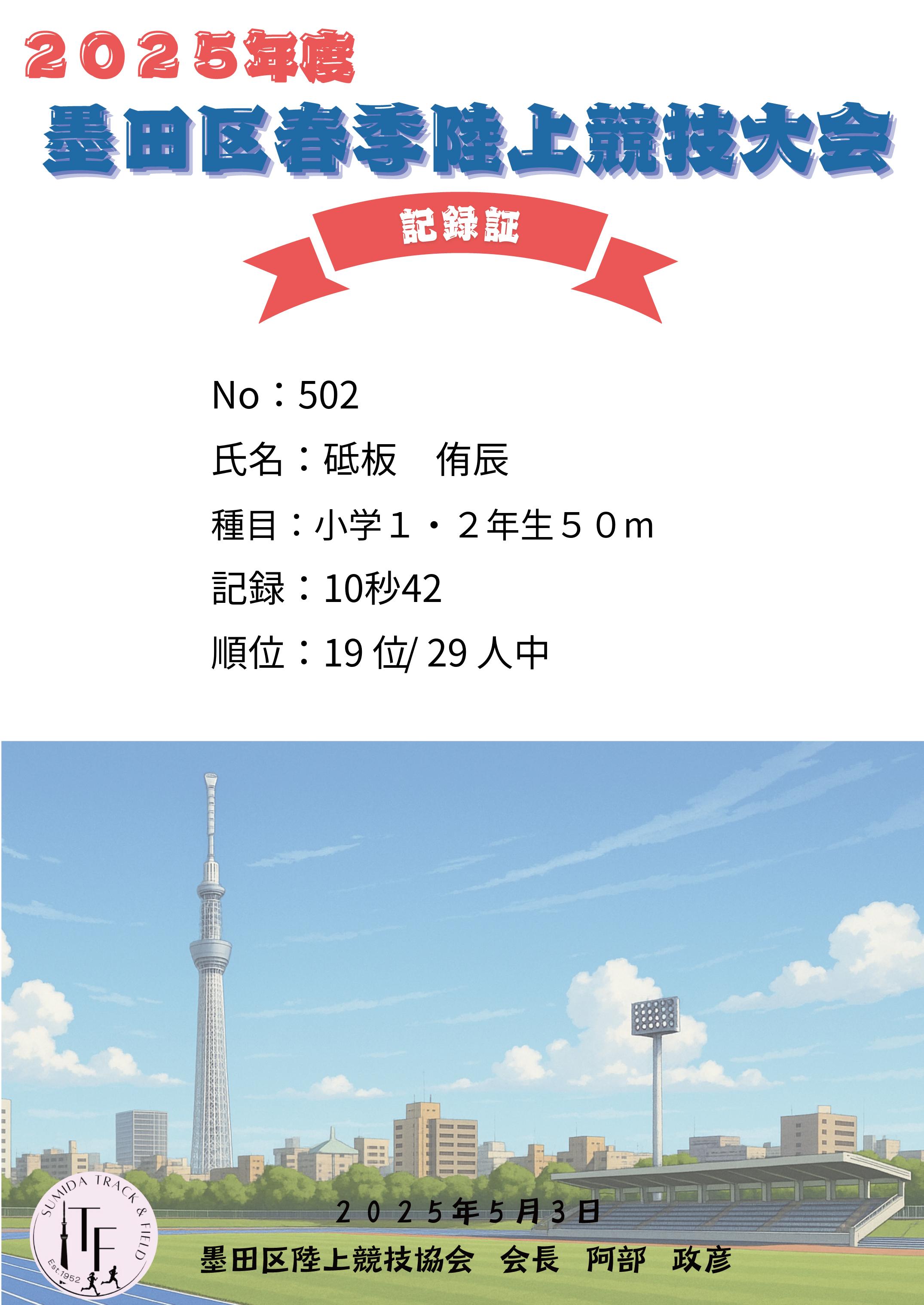 | 記 録: | 10秒42 |
