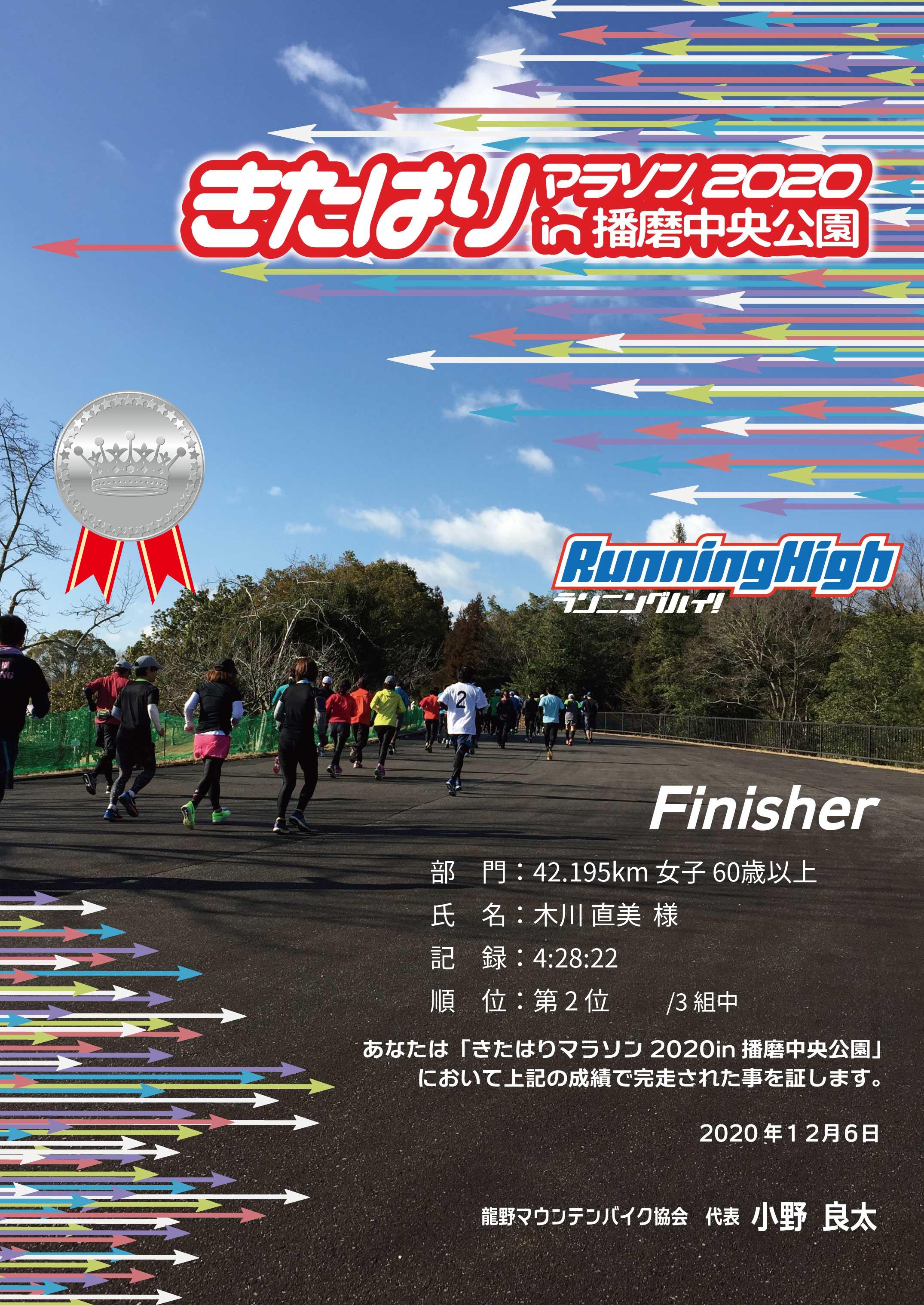 | 42.195km | 4:28:22 | 0:32:46 | 2 |