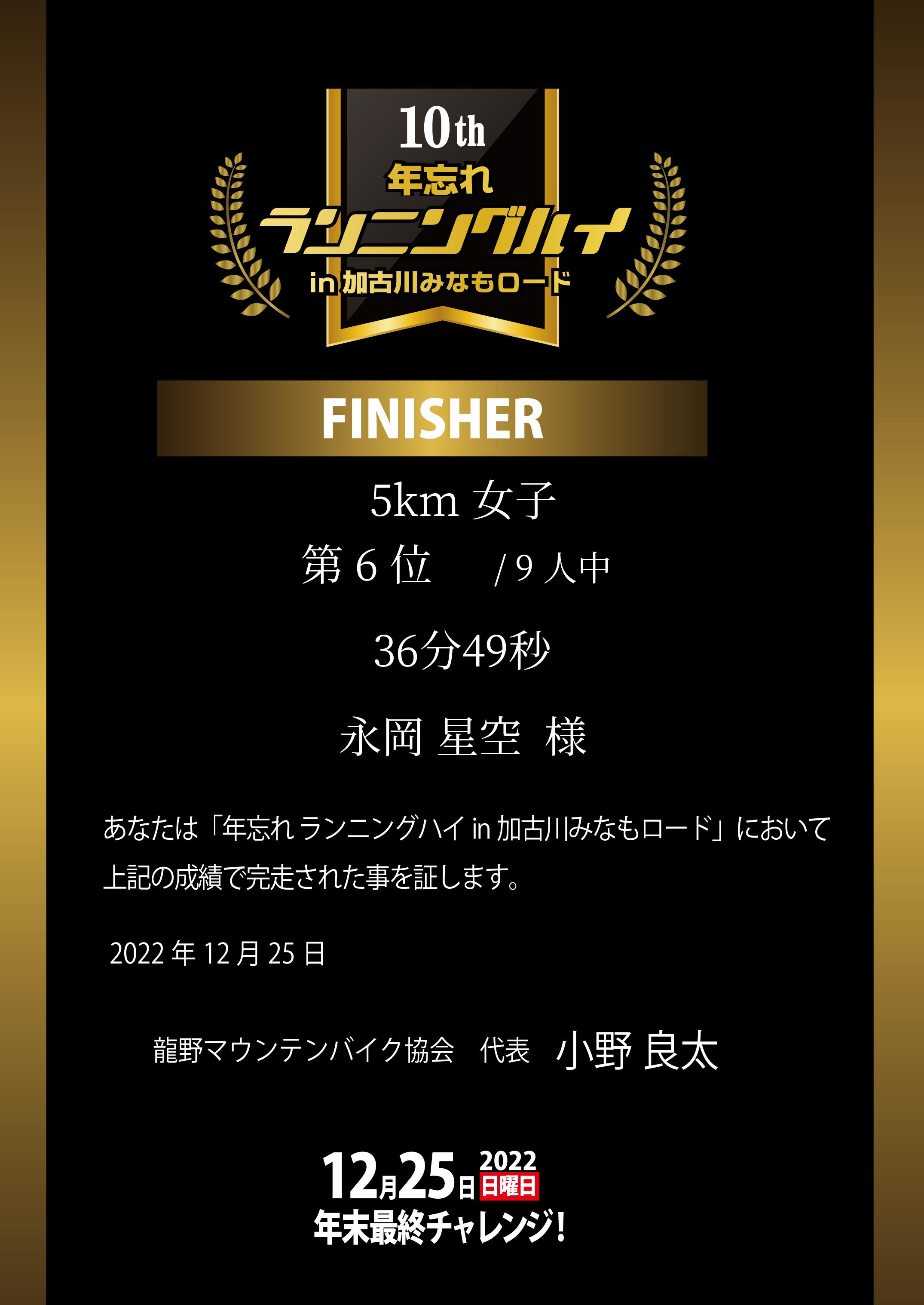 | 部門別順位: | 6位 /9 人中 |