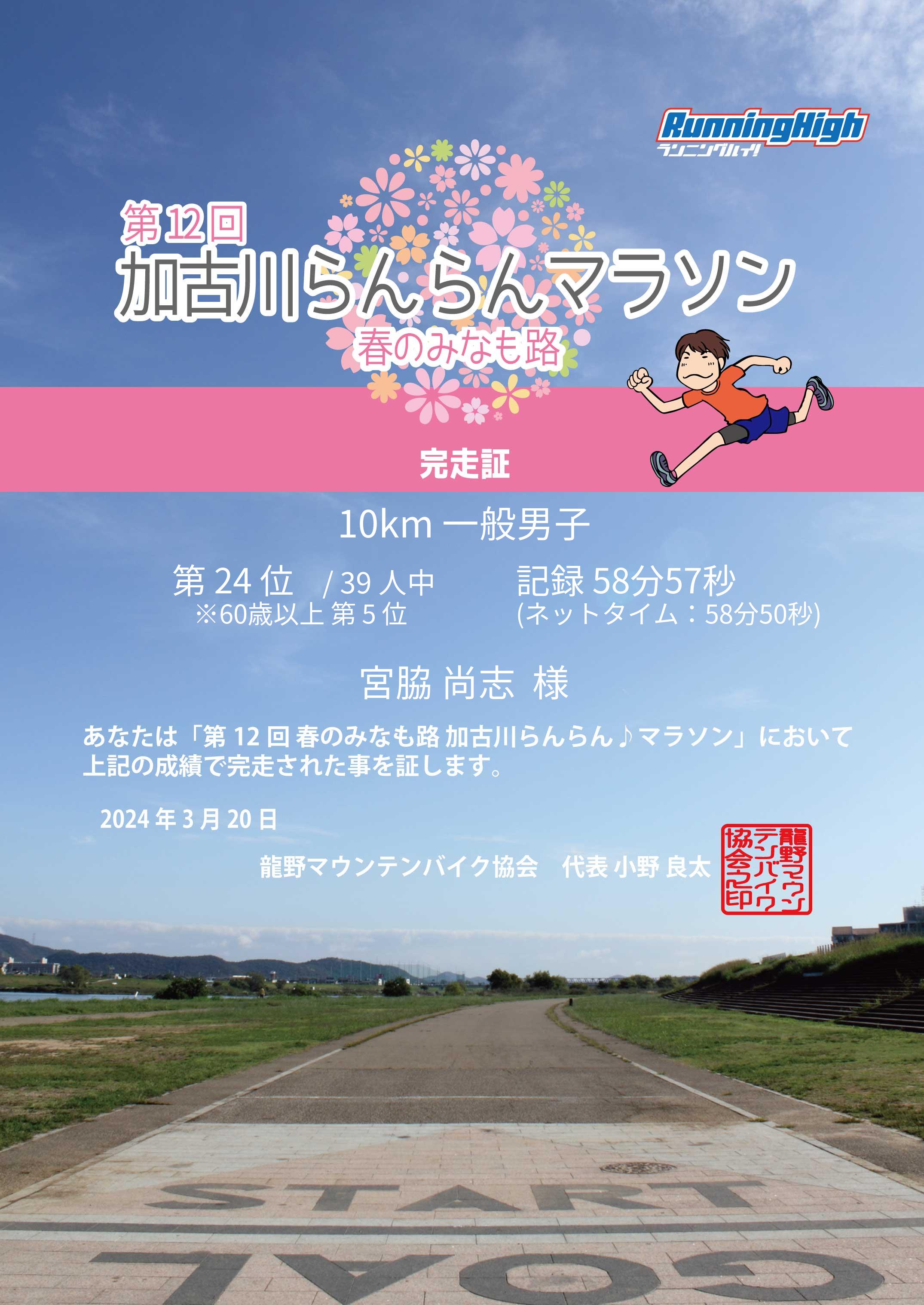 | 10km | 58:57 | 29:28 | 24 |