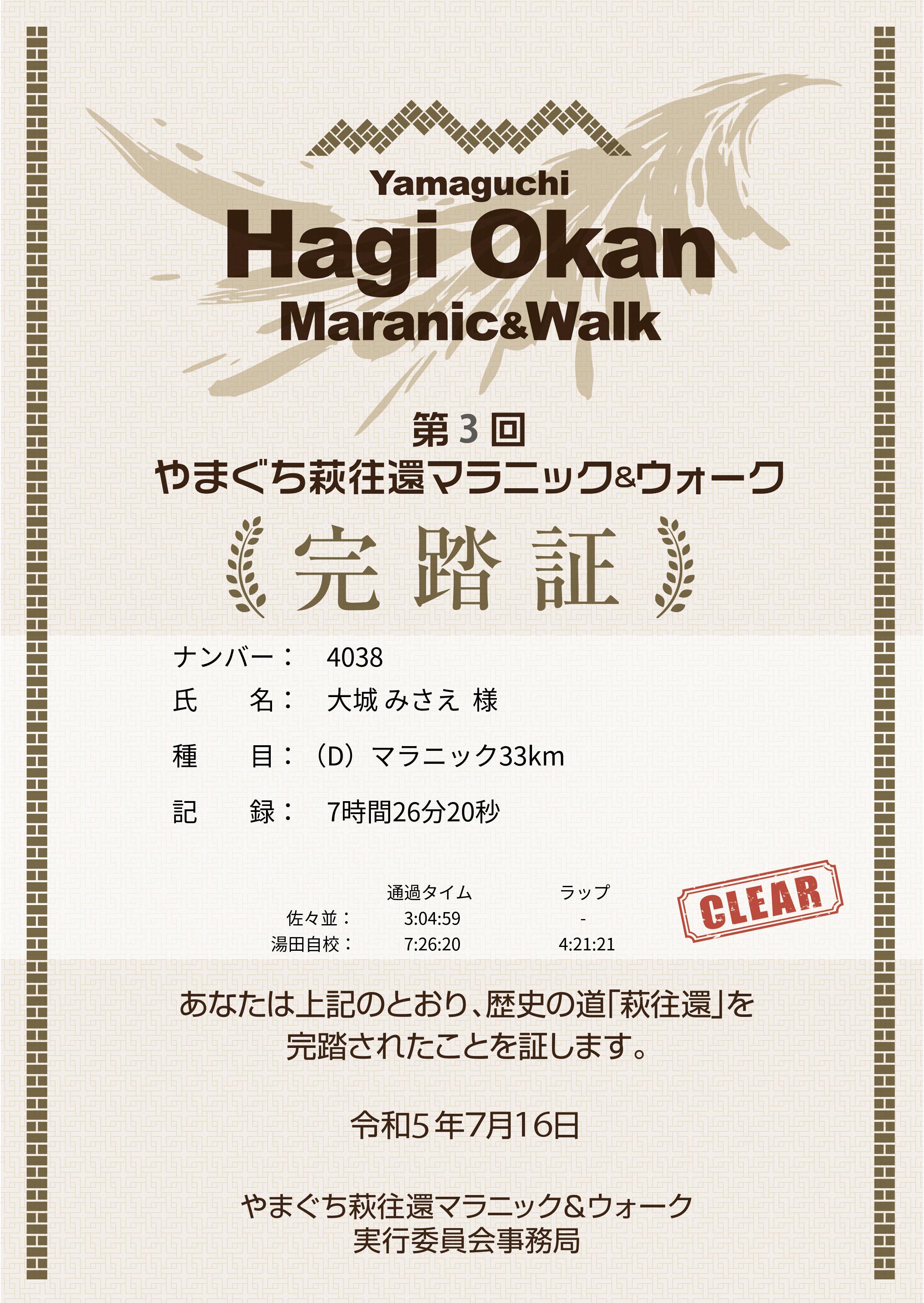 | FINISH湯田自校 | 7:26:20 | 4:21:21 | 166 |