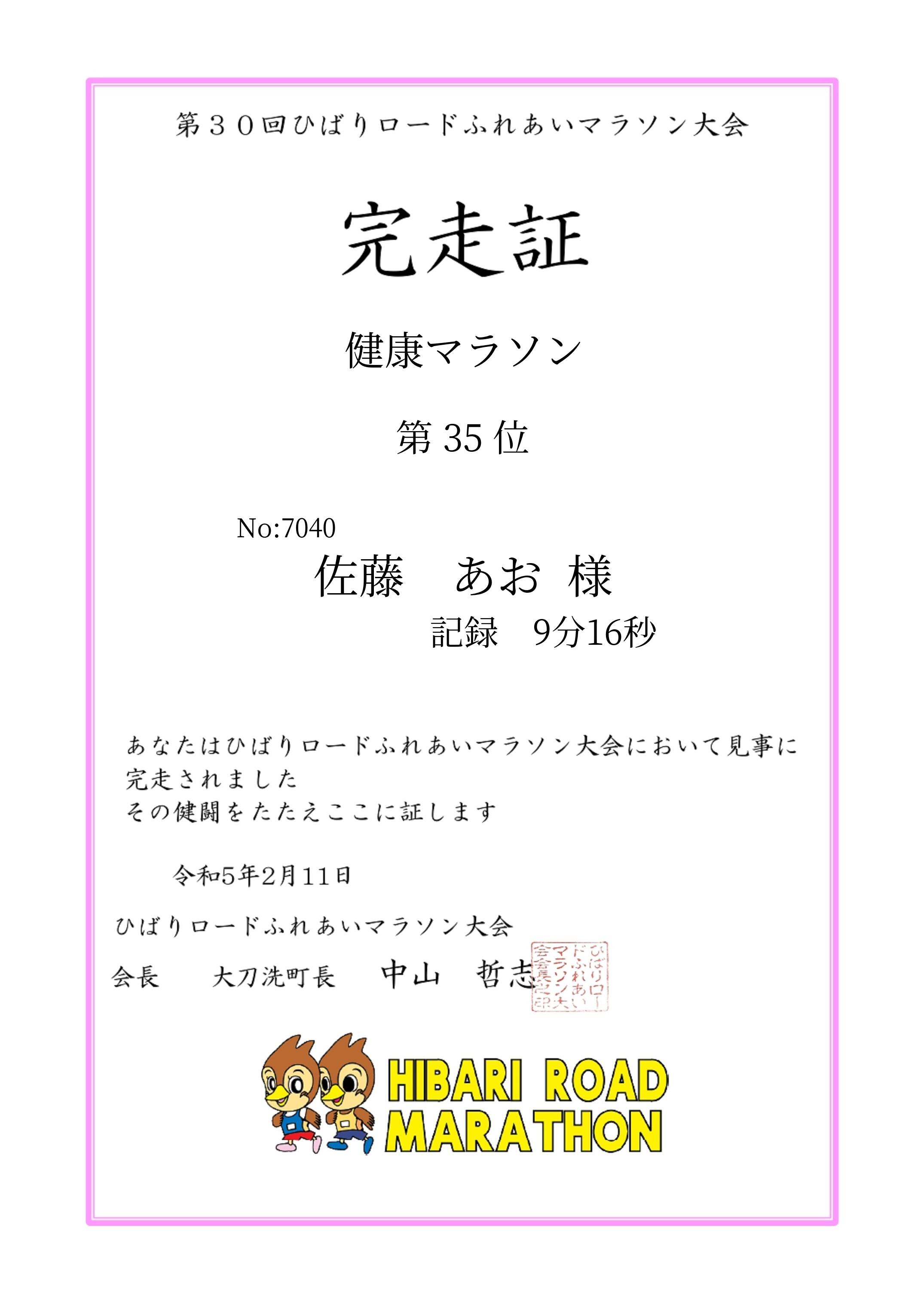 | 距離別順位: | 35位 /84 人中 |
