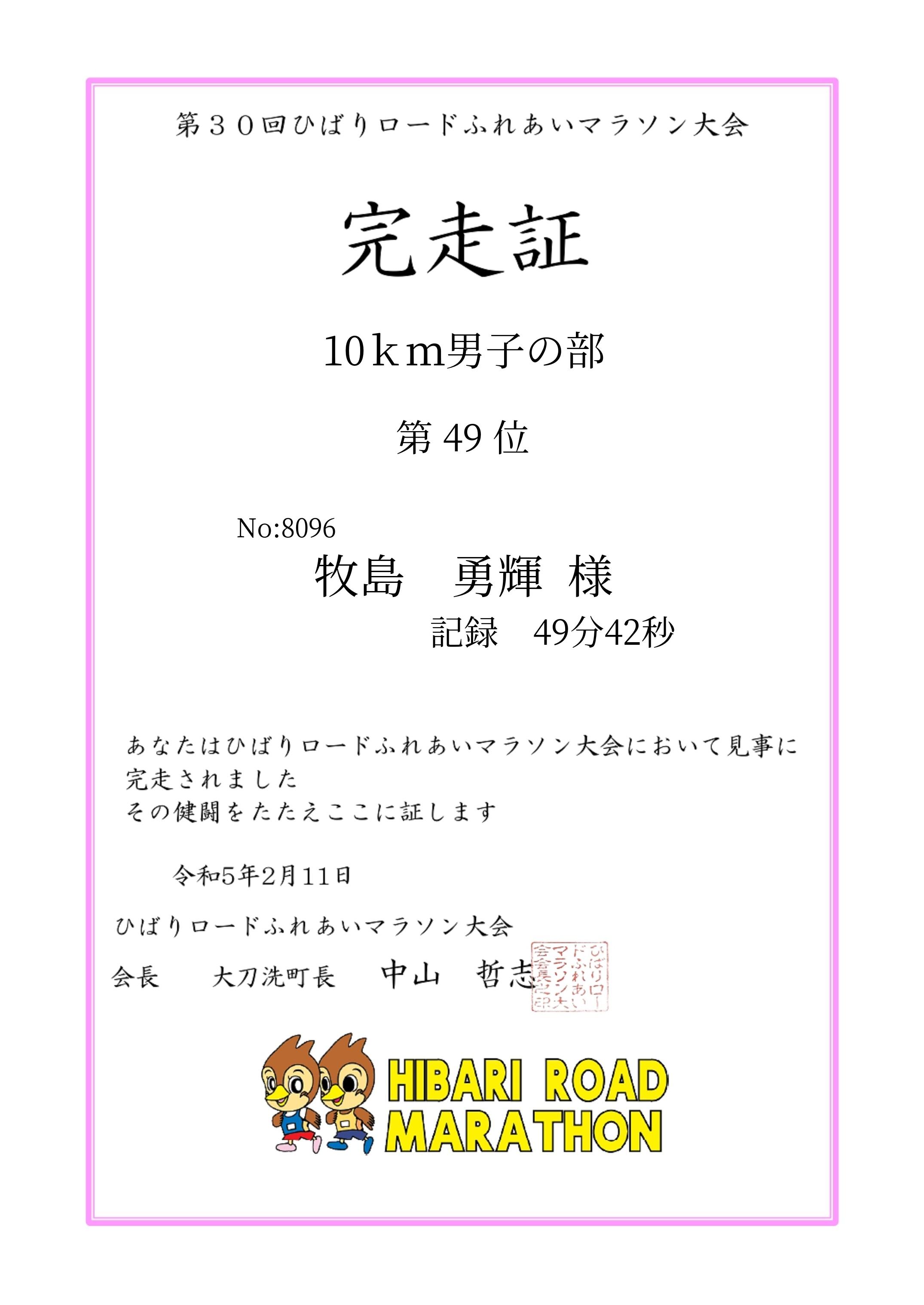 | 距離別順位: | 53位 /142 人中 |