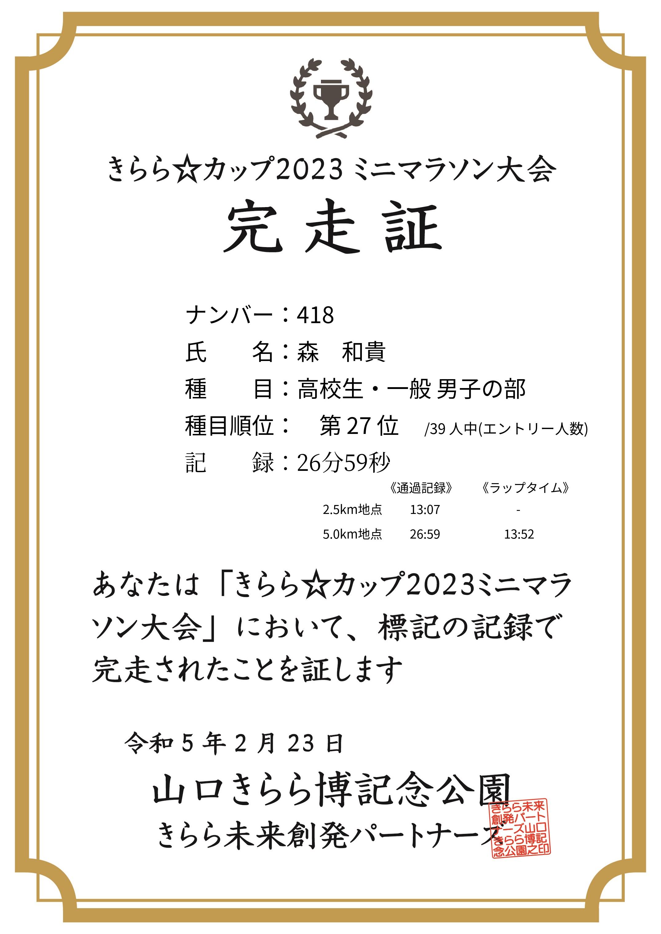 | 5km | 26:59 | 13:52 | 27 |