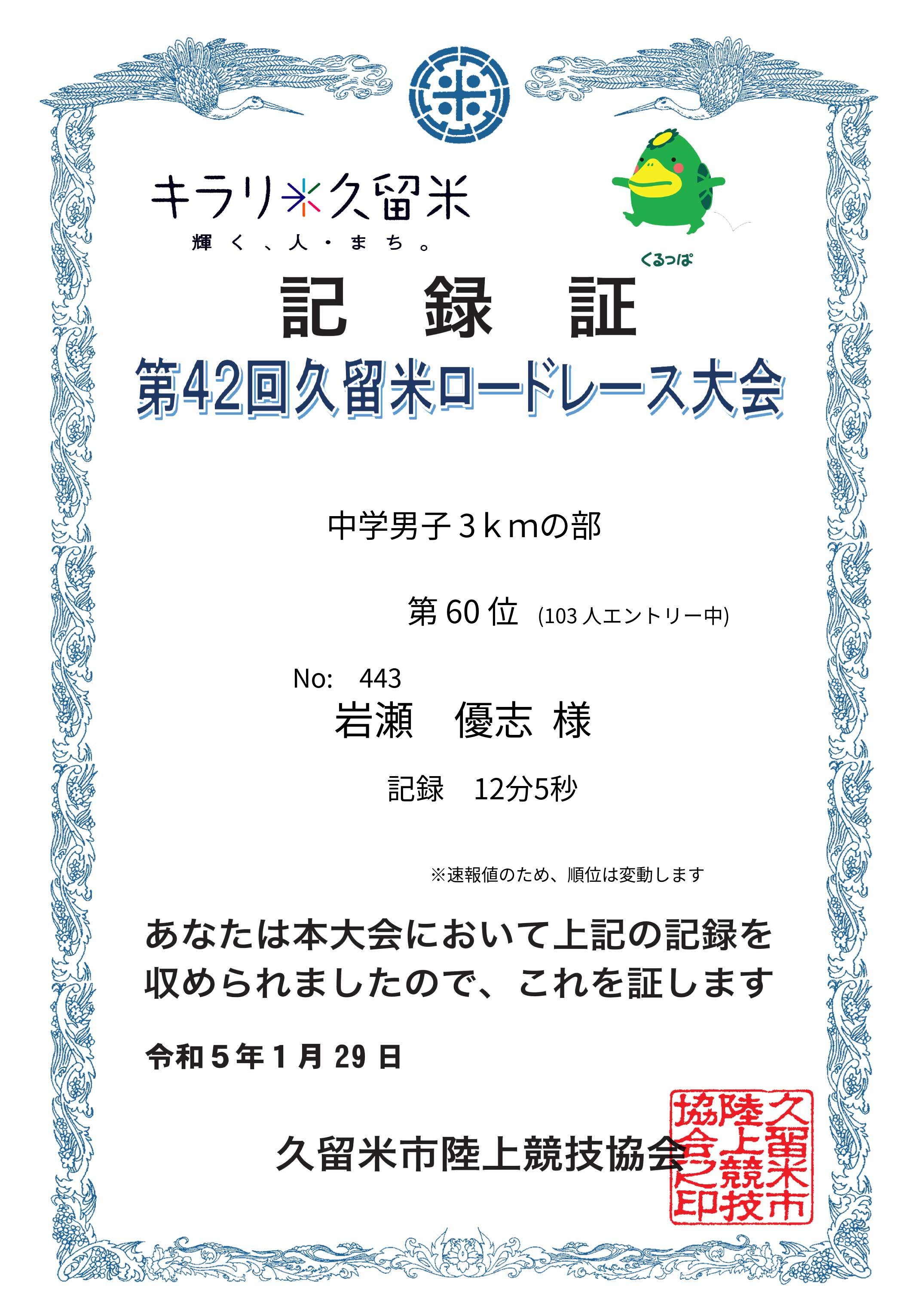 ※速報値のため参考順位/記録となります。