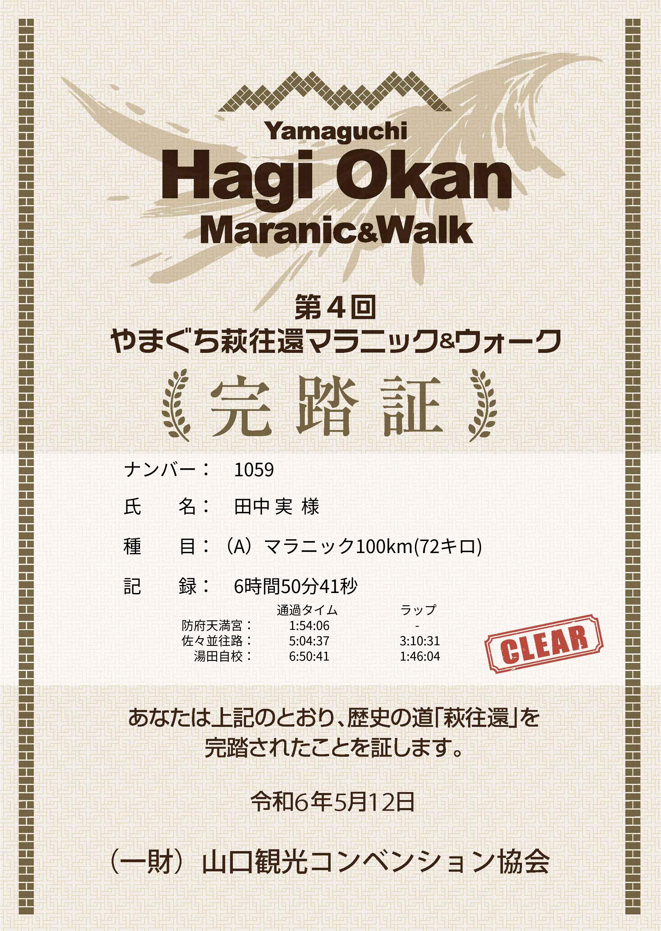 | FINISH湯田自校 | 6:50:41 | 1:46:04 | 1 |