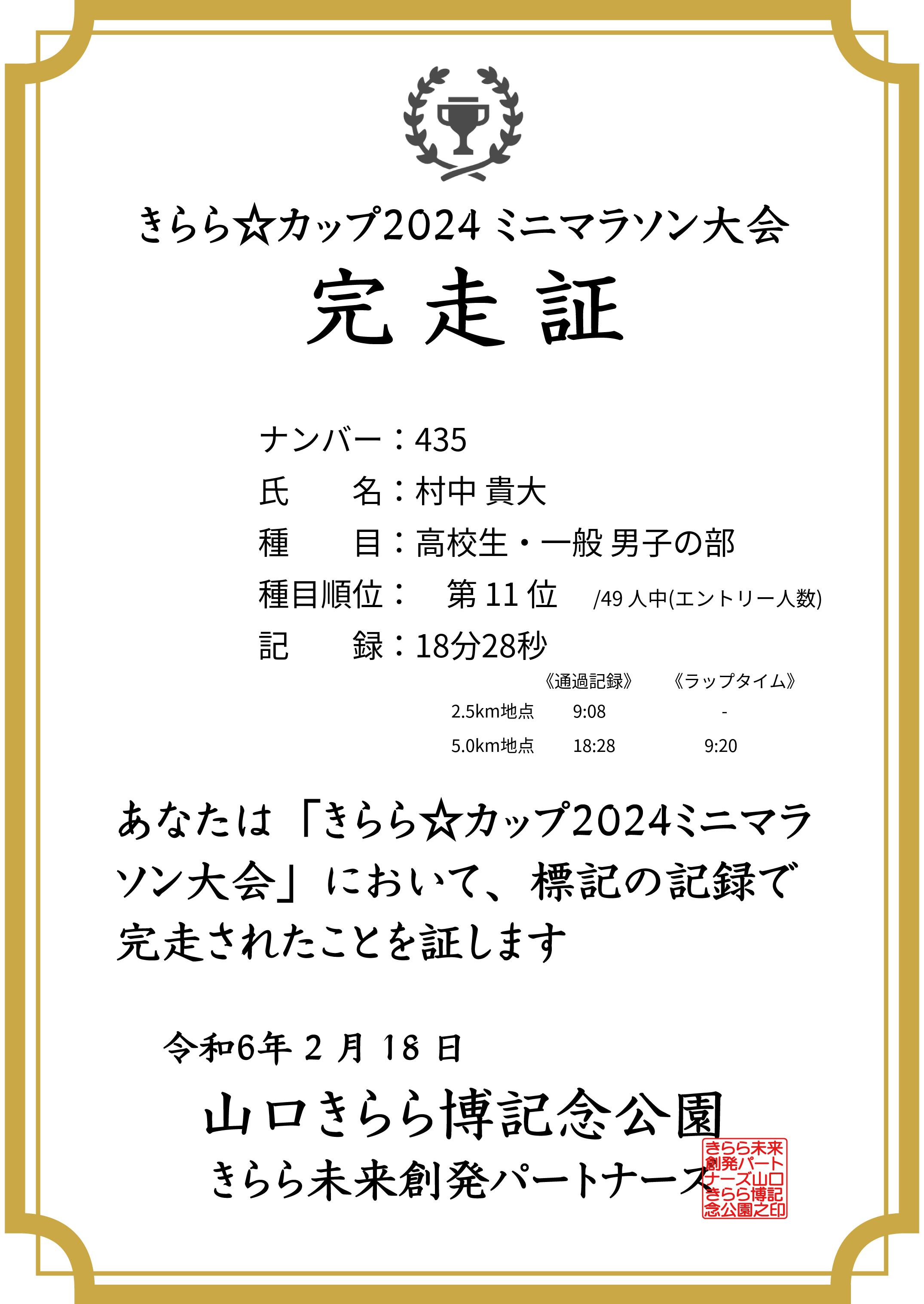 | 5km | 18:28 | 9:20 | 11 |