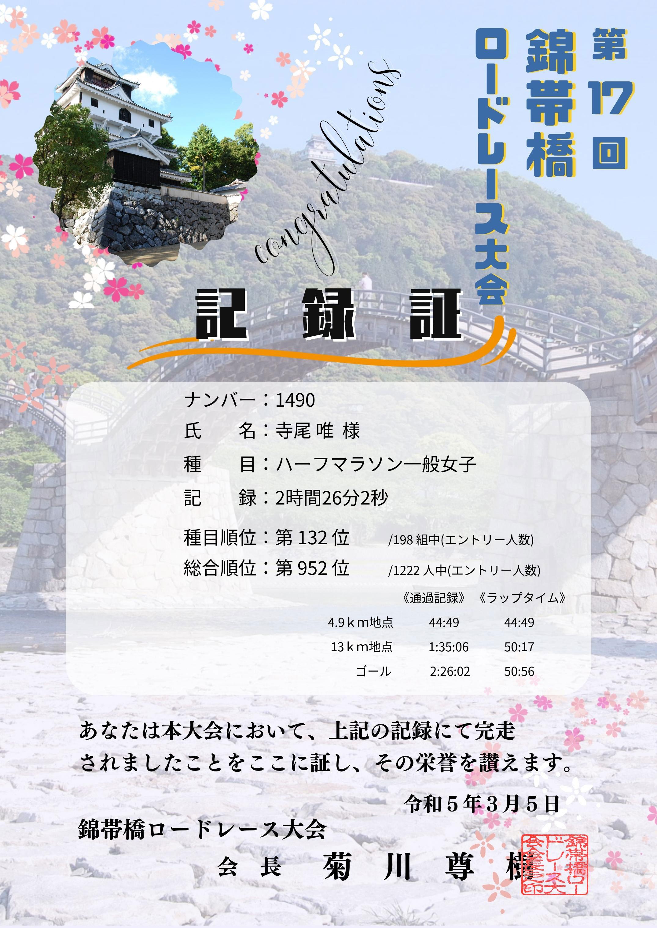 | 21.0975km地点 | 2:26:02 | 50:56 | 51 |