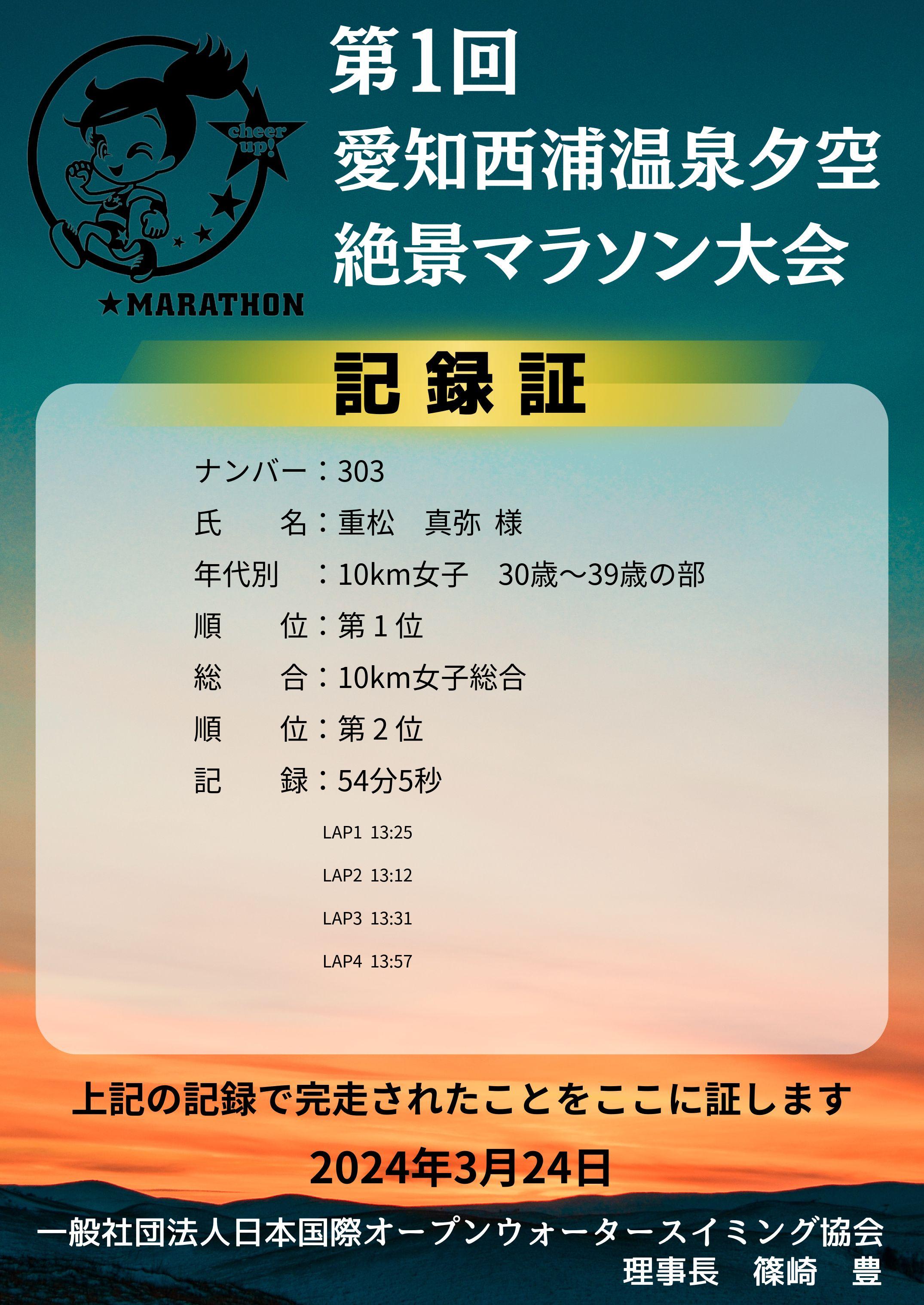 | 種目別順位: | 1位 /1 人中 |
