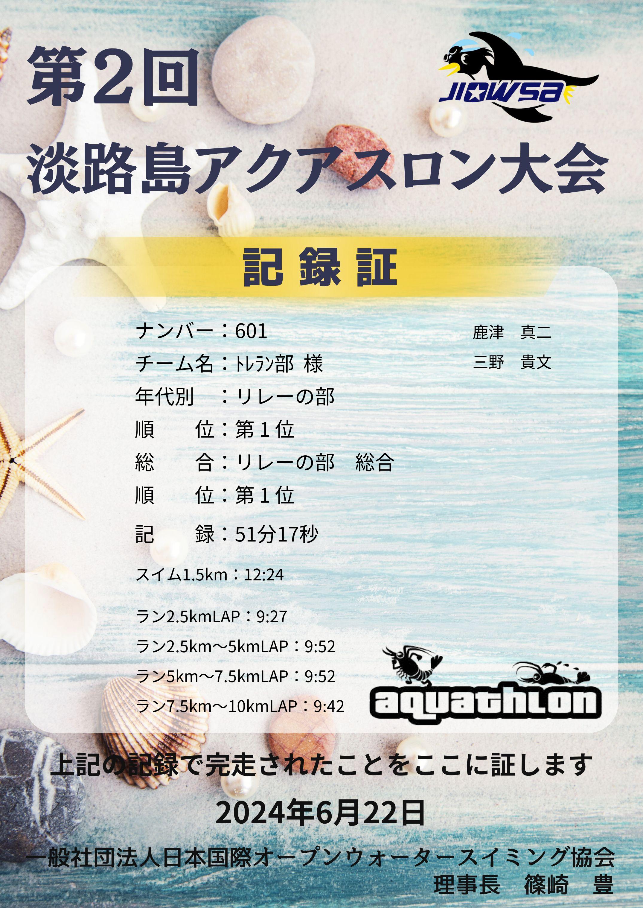 | ラン7.5km地点 | 41:35 | 9:52 | 1 |