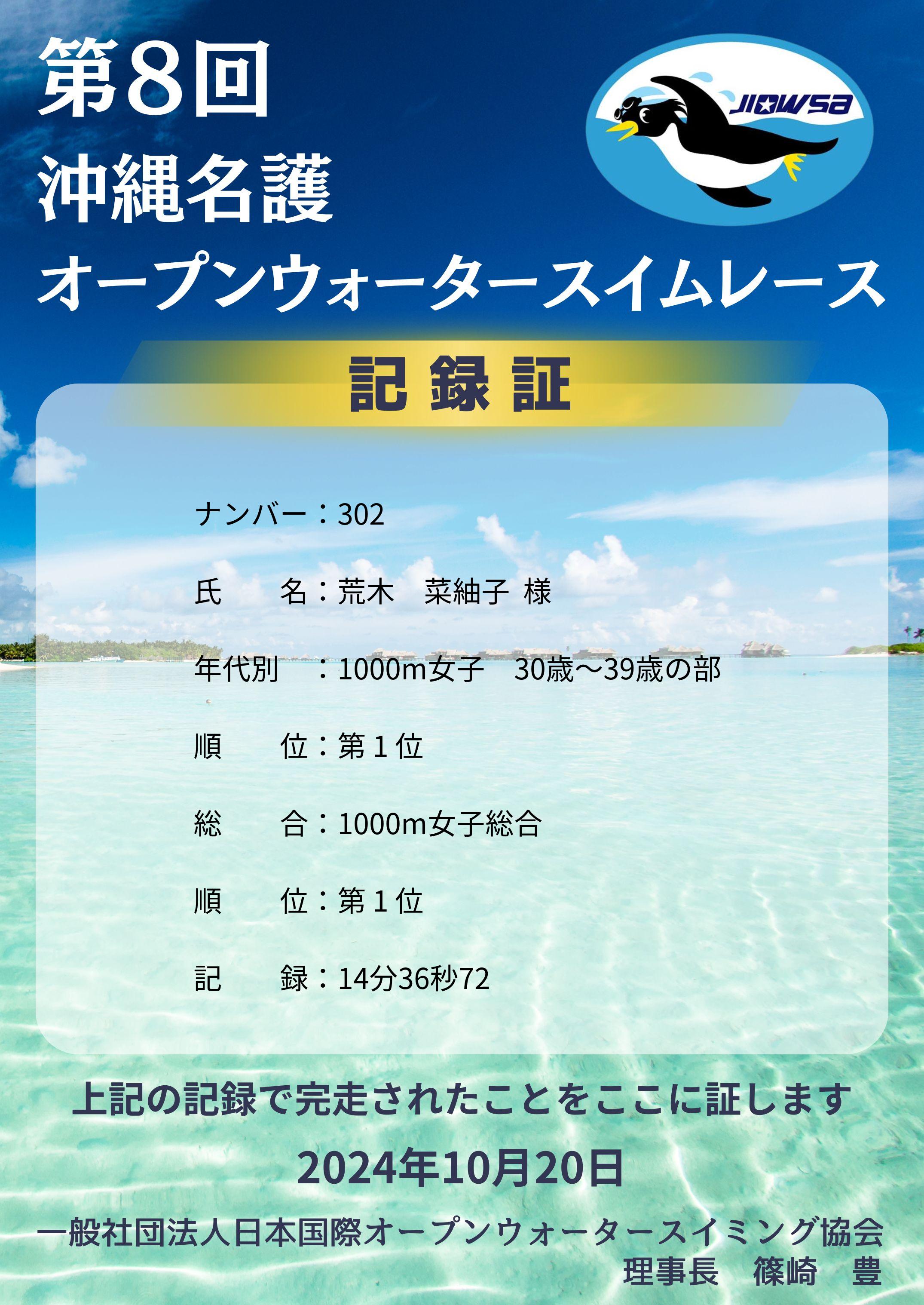 | 種目別順位: | 1位 /3 人中 |