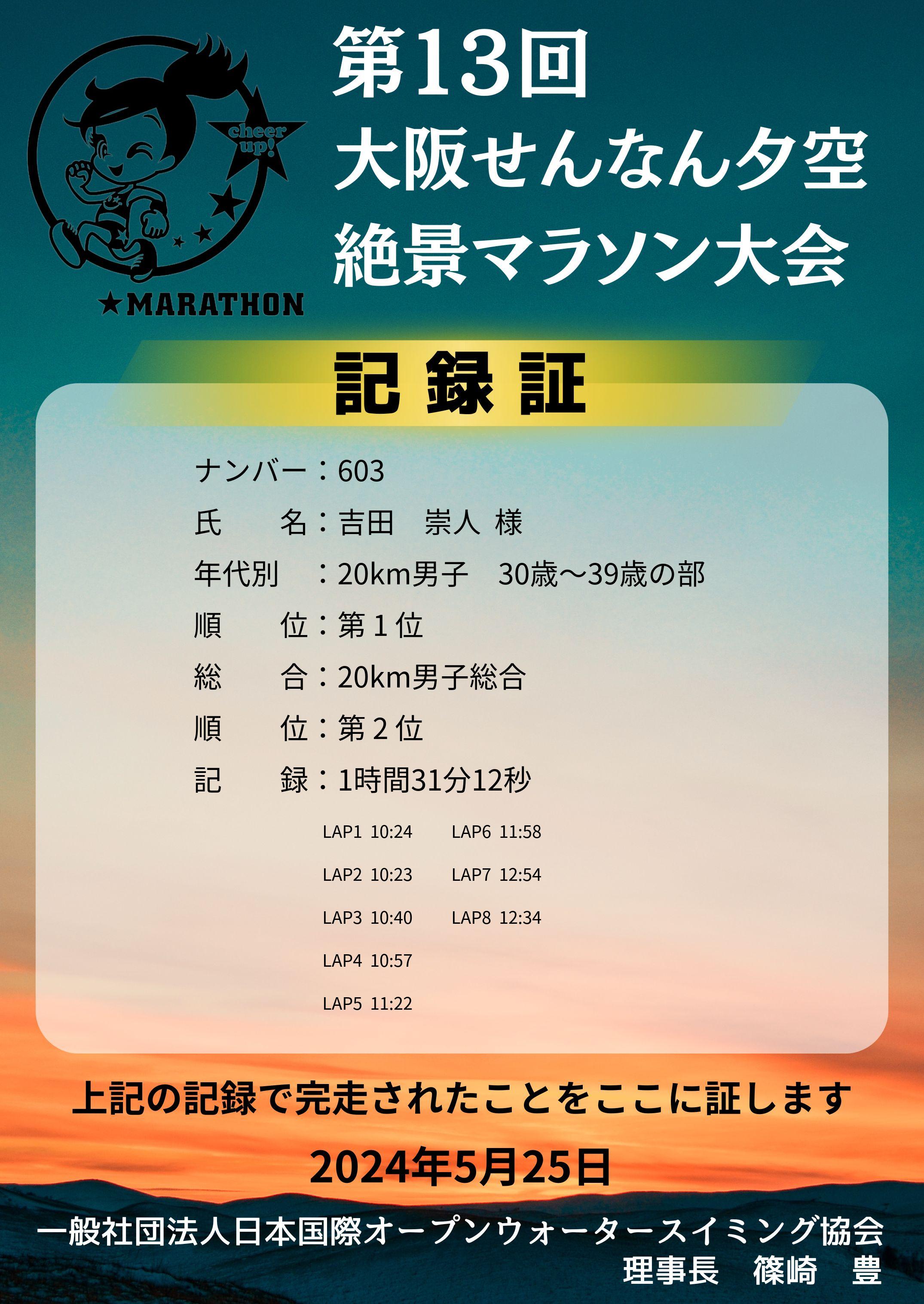 | コース別(総合)順位: | 2位 /10 人中 |
