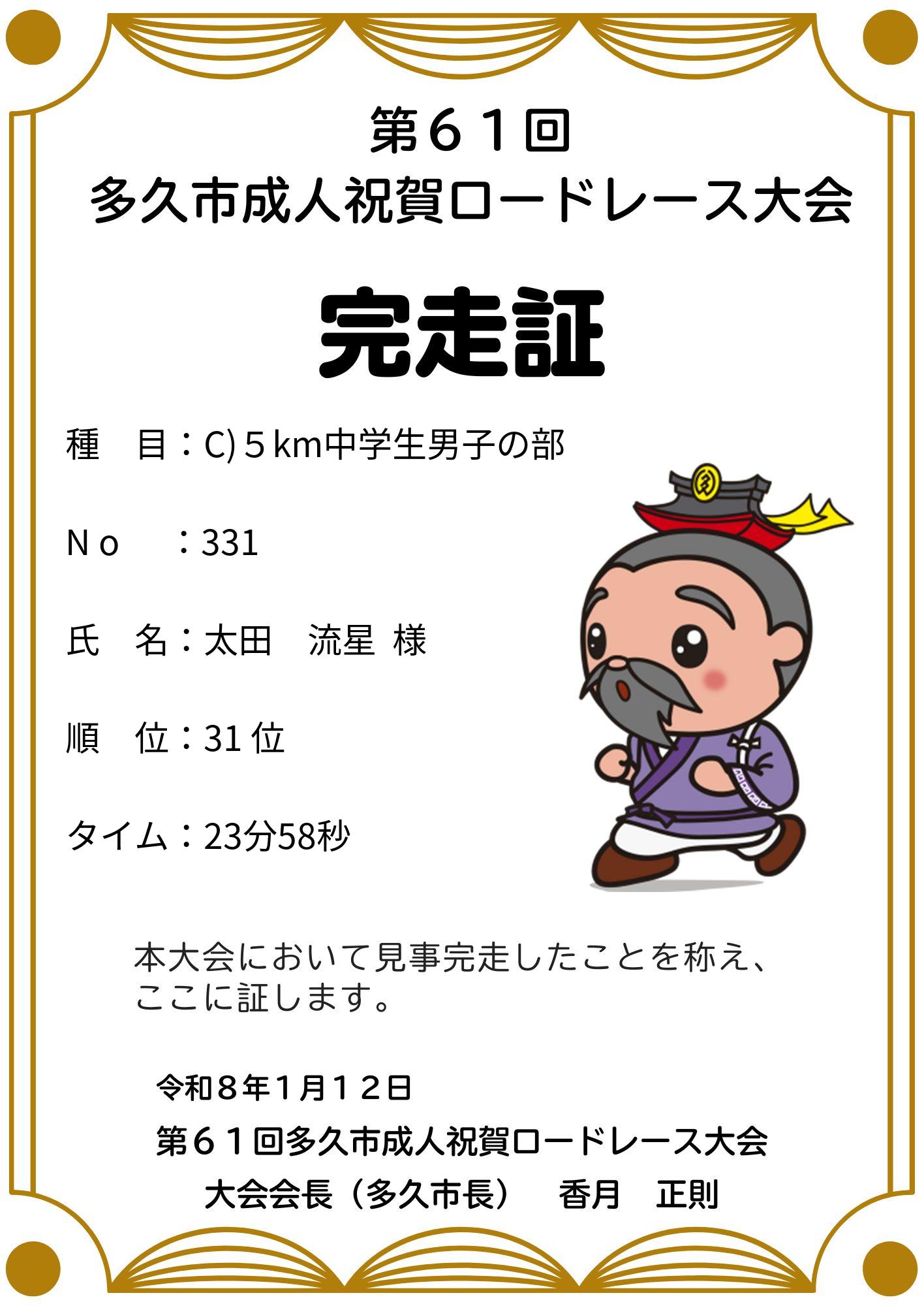 第61回多久市成人祝賀ロードレース大会