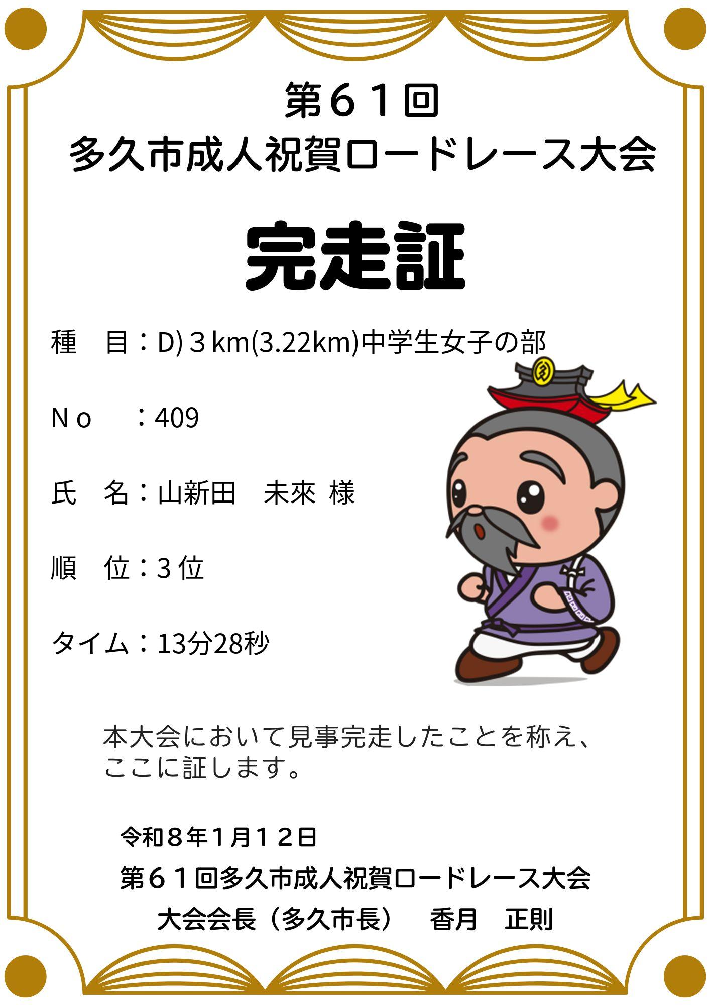 第61回多久市成人祝賀ロードレース大会