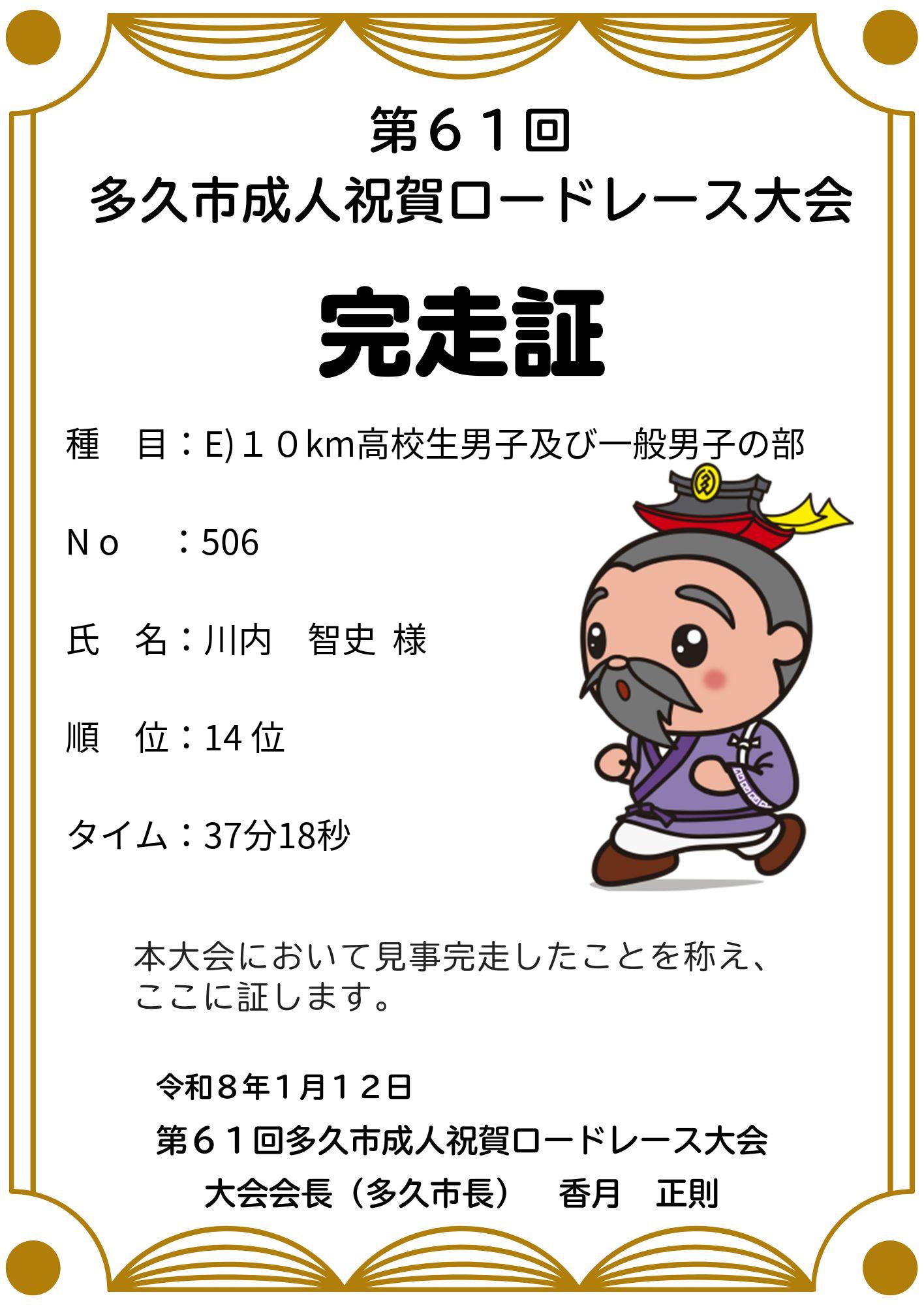 第61回多久市成人祝賀ロードレース大会